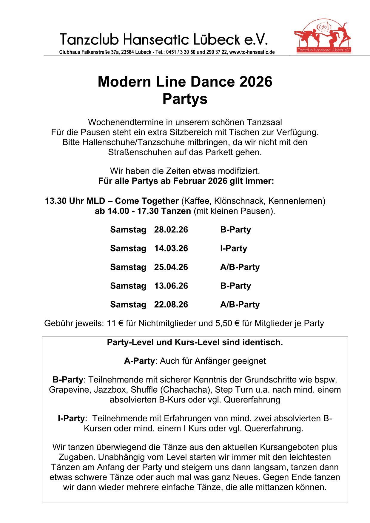 Kommt vorbei und lasst euch von der Freude am Tanzen anstecken. Wir freuen uns darauf, euch im Tanzclub Hanseatic in Lübeck begrüßen zu dürfen!